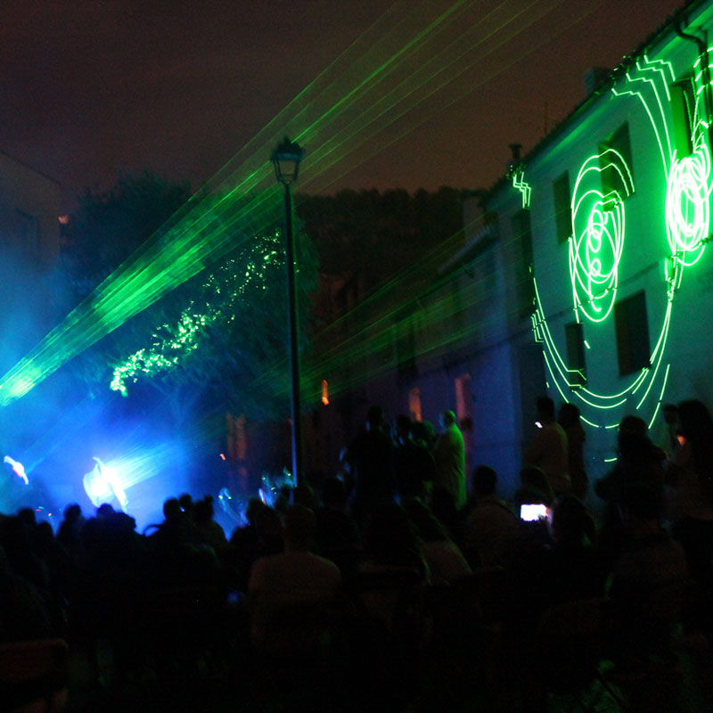 Las horcas de los diables, que habitualmente desprenden chispas, se sustituyen por unas horcas de luz/láser que generarán figuras volumétricas de luz al hacer girar varios emisores de luz láser articulados con pequeños motores.