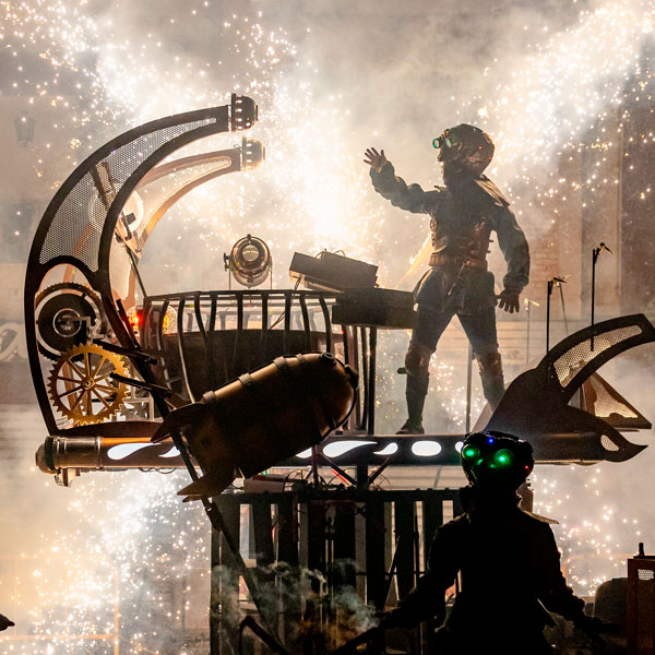 ALIEN’S FOC. Una Odisea Pirotécnica A partir del argumento clásico de la Odisea recreamos un espectáculo pirotécnico itinerante de gran formato utilizando la técnica del Correfocs. En los confines de la galaxia, en la superficie del planeta FOC, se encuentran perdidos e incomunicados los ALIENS FOC. Un grave accidente ha roto su brújula magnética y su equipo de transmisiones y solo disponen de un modesto vehículo de transporte terrestre. El Planeta FOC es un laberinto indescifrable lleno de peligros y de legendarios seres mitológicos que irán saliendo a su encuentro. La inesperada ayuda de los humanos se convierte en la mejor arma para emprender una travesía épica en búsqueda de la nave HORMIGGUEDON 4 con la que poder regresar a casa. Un atávico desafío que será la clave del éxito en su ansiado retorno a AYRON.