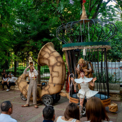 Un espectáculo extraordinario e inolvidable para toda la familia. La domadora, la pulga y el conductor de esta curiosa troupe nos presentan este espectáculo itinerante repleto de peripecias, números cómicos, interacciones con el público y mucho arte callejero.